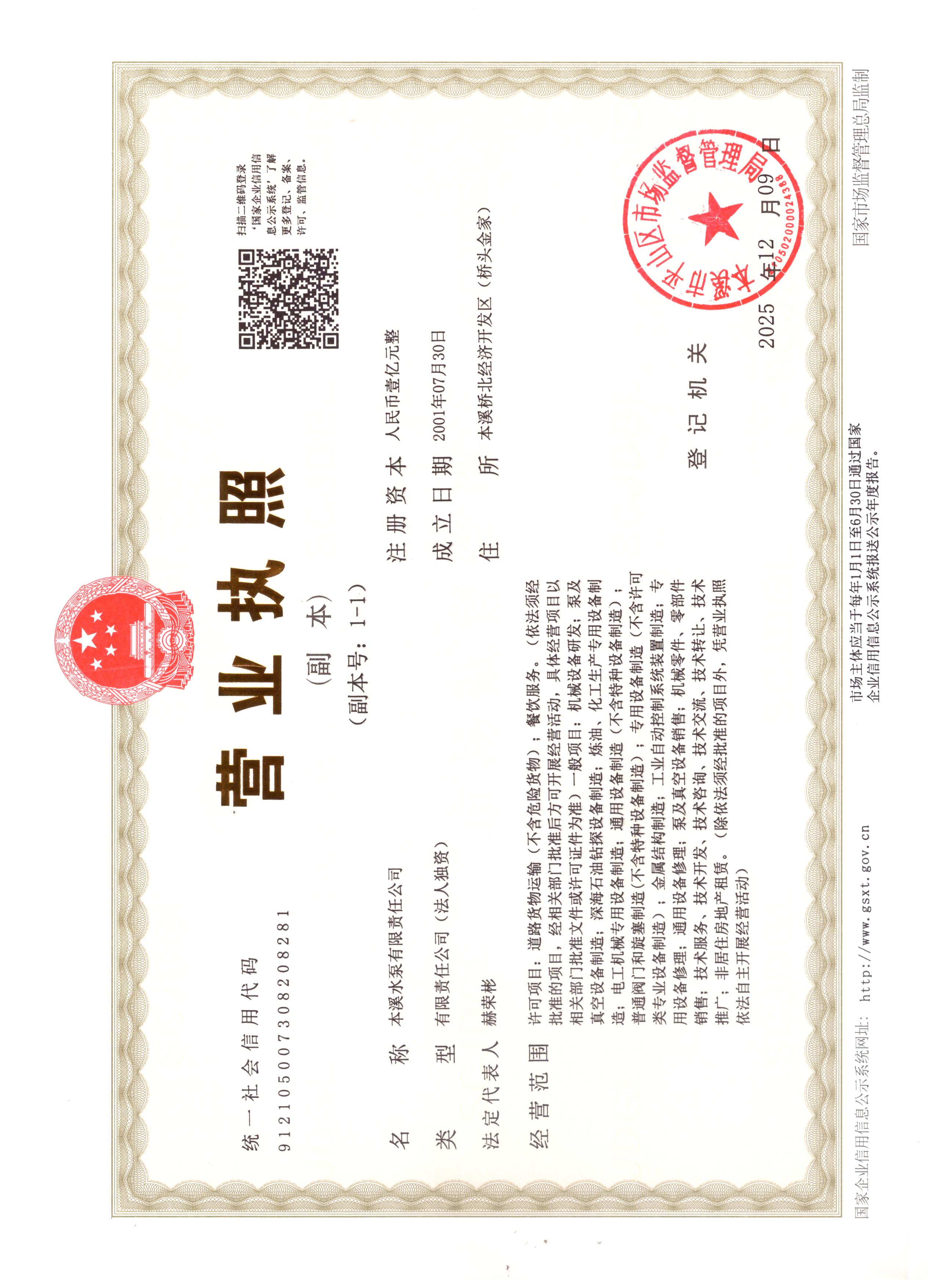 本溪水泵有限责任公司始建于1953年,是国内生产制造工业离心泵,工业往复泵,成套装置的中国通用机械工业协会泵业分会理事单位。公司设有工业往复泵研发中心和工业离心泵试验中心,省级研发中心,省级高压船用泵工程试验中心,是我国东部泵研发及生产制造基地。公司已通过军工质量体系,产品质量体系ISO9001,职业健康安全管理体系认证OHSAS18001,环境管理体系认证ISO14001。